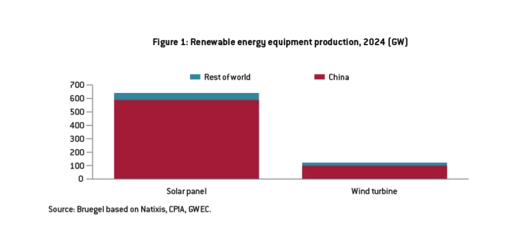 The Asian giant is a massive player in the renewable energy market, manufacturing 92% of the world’s solar modules and 82% of wind turbines as of 2024.
