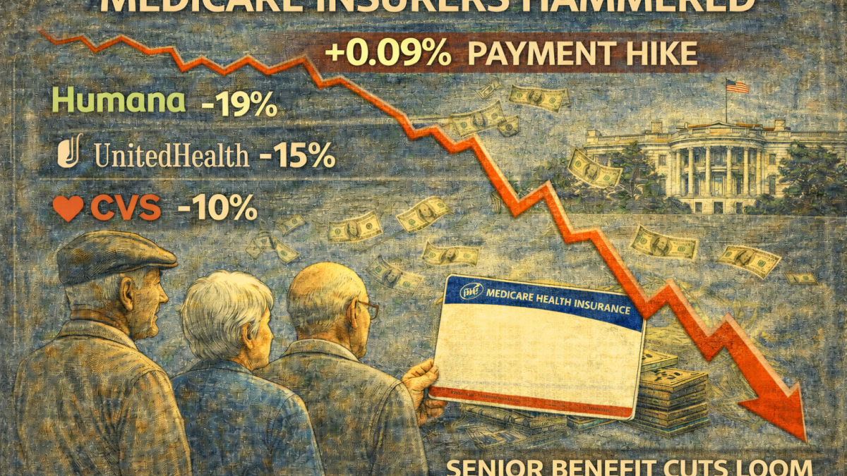 Trump’s near-flat Medicare Advantage rate sparks insurer selloff, raising fears of benefit cuts for 35 million seniors.
