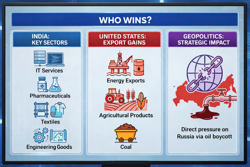 India-US trade deal explained: tariffs cut from 50% to 18%, Russian oil factor, diplomacy and market impact, told in visuals.