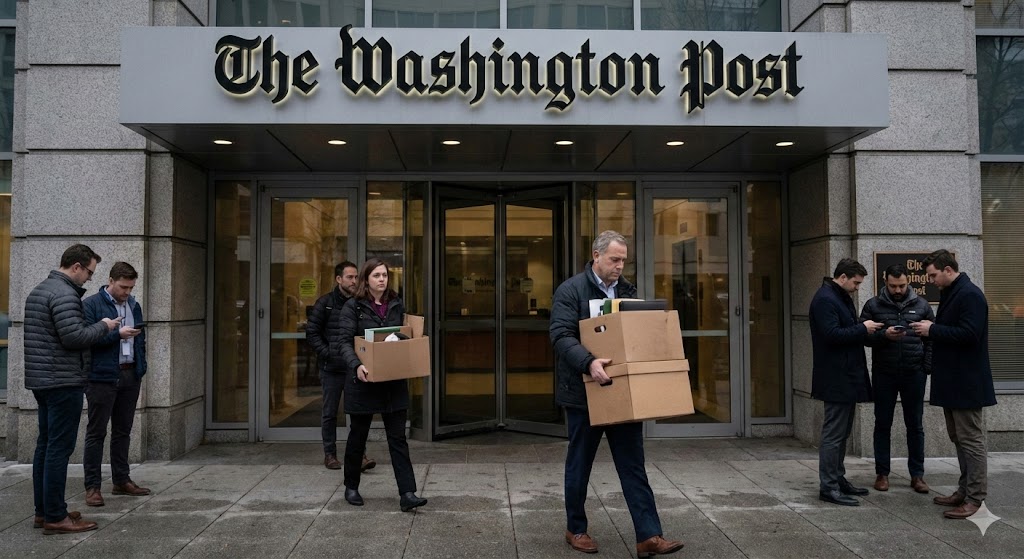 Washington Post cuts over 300 jobs as editors blame AI, falling search traffic, and shrinking revenue in a major newsroom reset.
